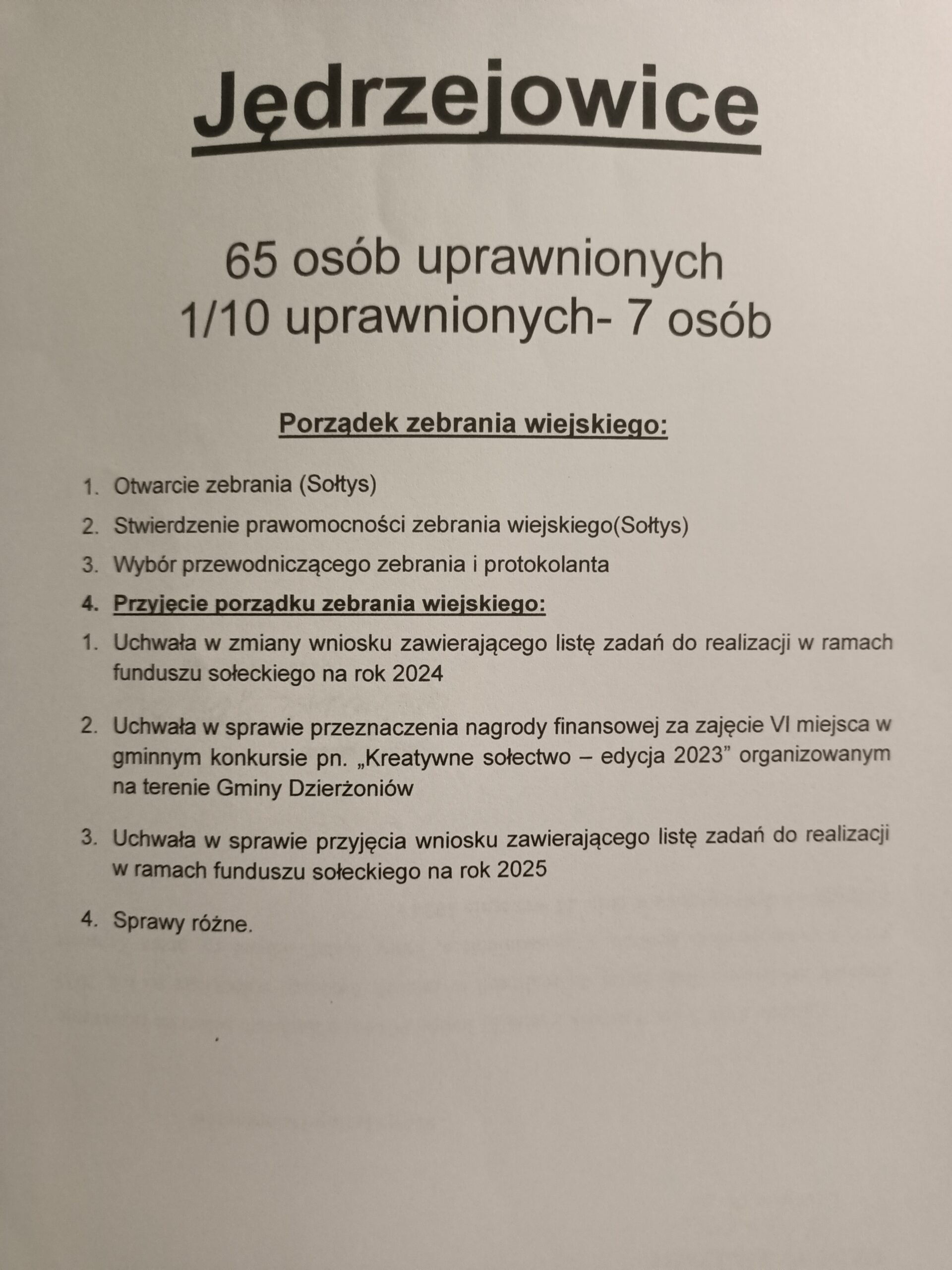 – przyjęcia wniosku zawierającego listę zadań do realizacji w ramach funduszu sołeckiego na rok 2025.
